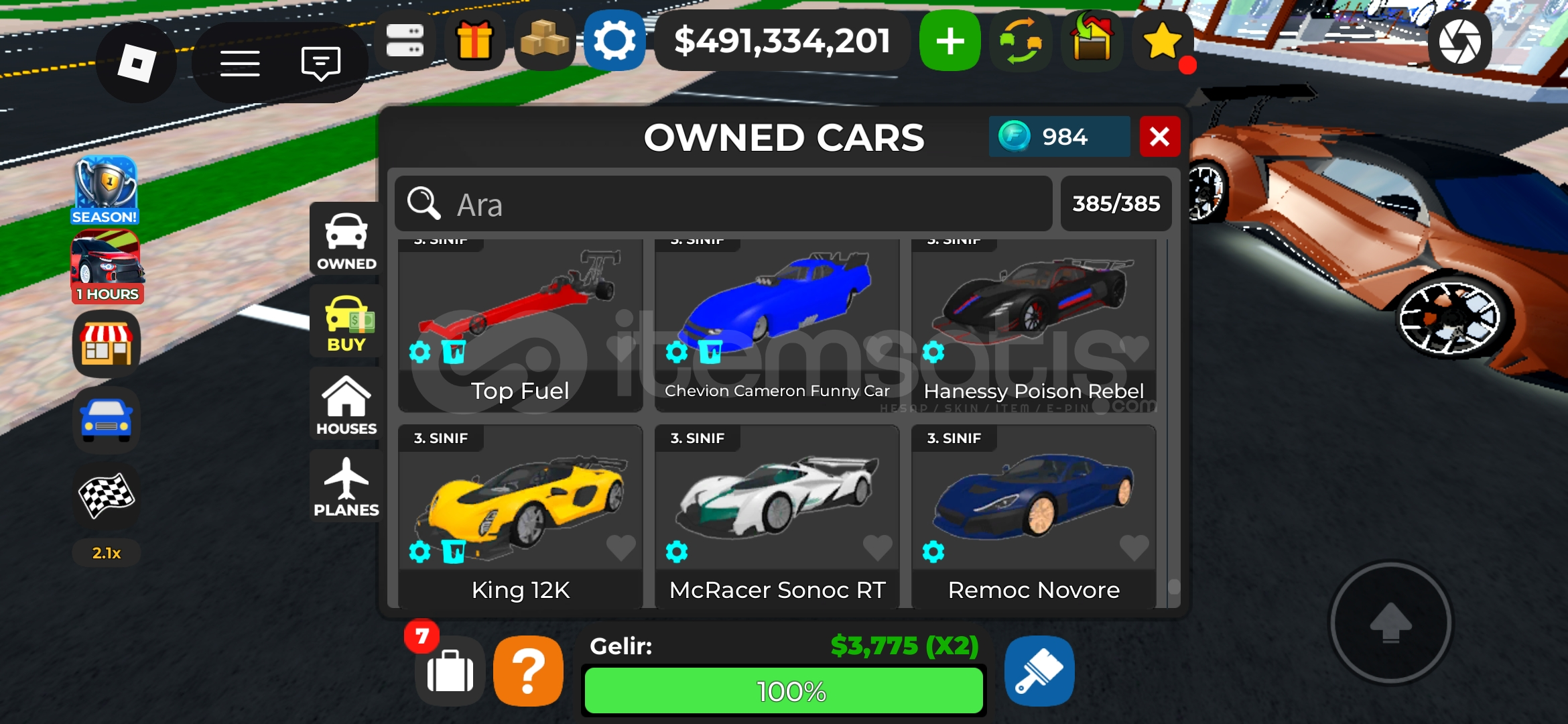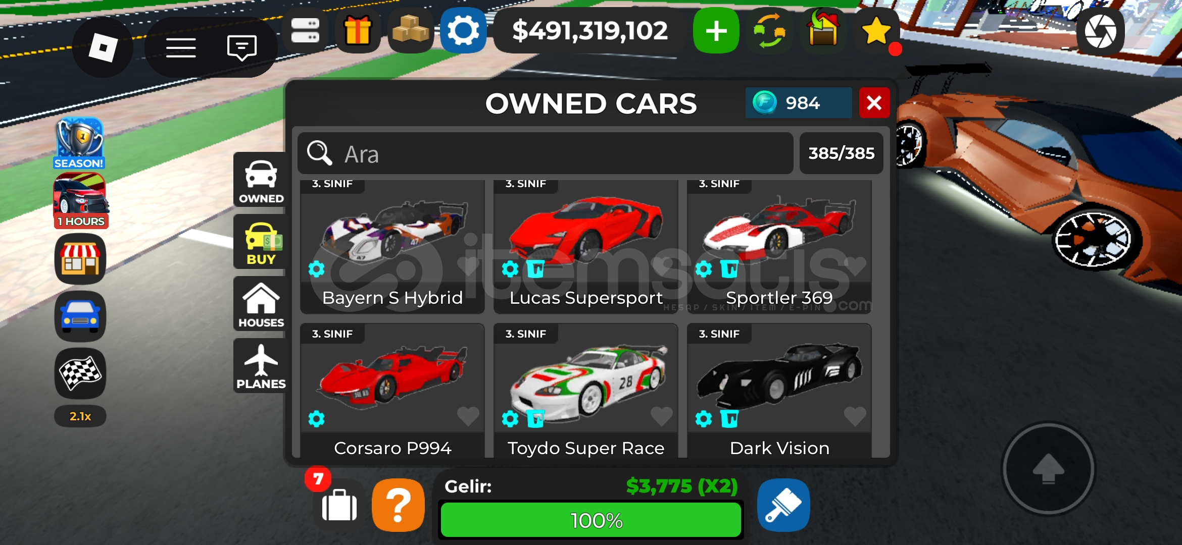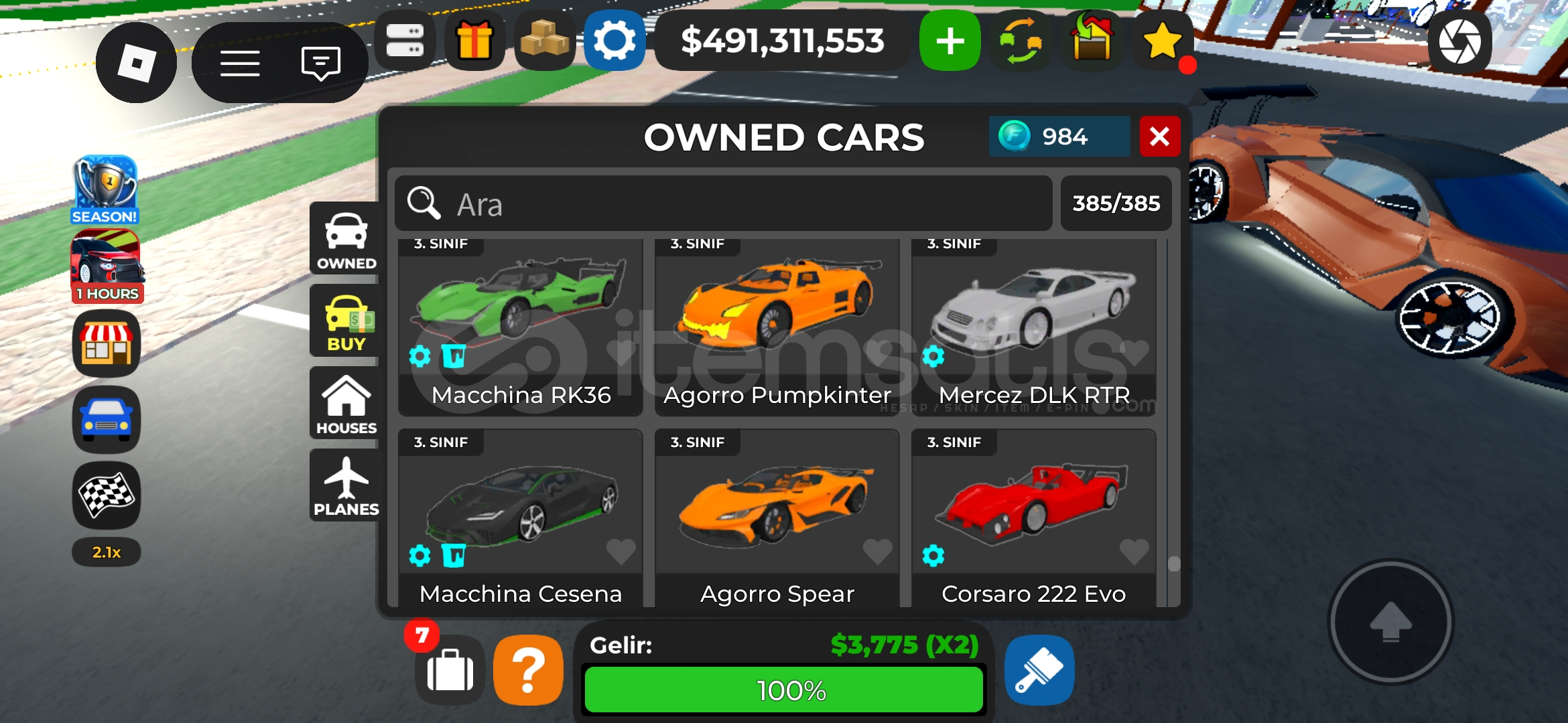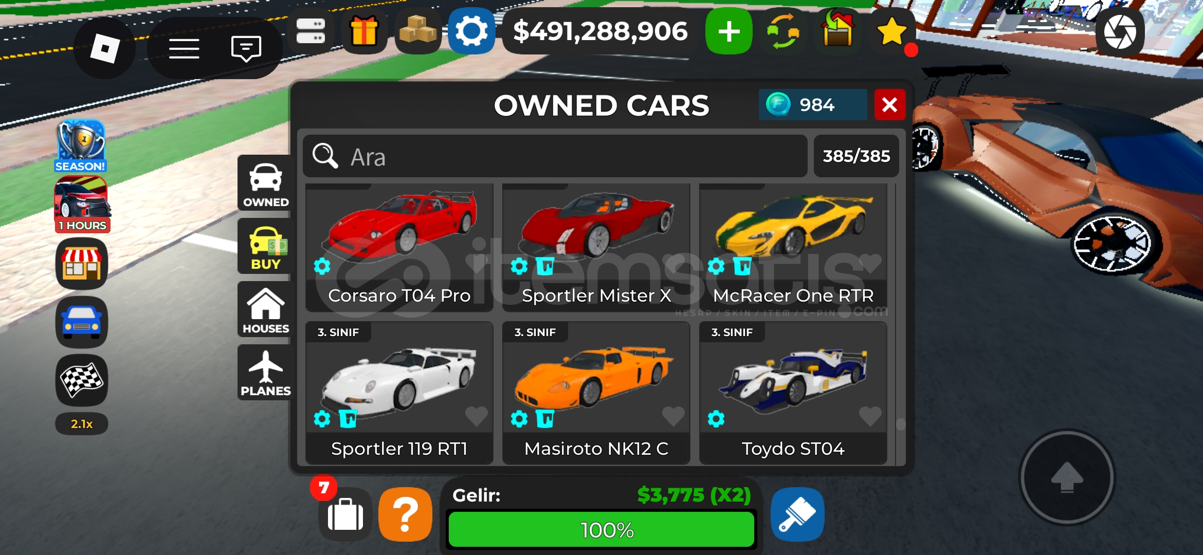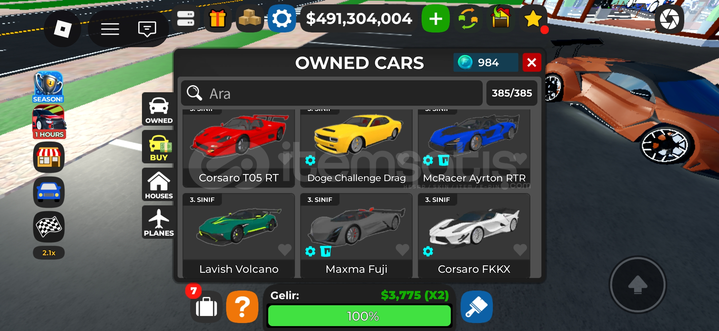 Car Dealership Tycoon (Görseldeki Arabalar)