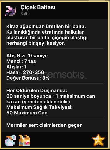 Bu balta oyunun en iyi baltası ve en yuksek hasar vuran esyalardan yani cok degerli.Fiyat konusulur.