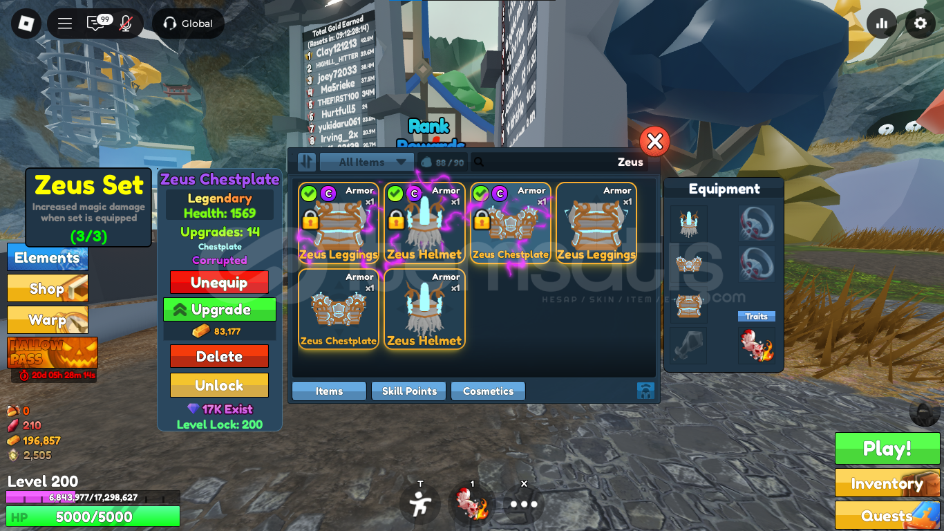 Corrupted Zeus Set (4899HP) | Elemental Dungeons