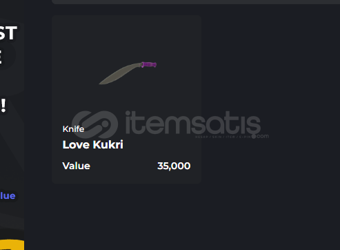 da hood love kukri bıçağı verilecektir 35000 valuedirsitede tek ve en ucuzudurpazarlık veya item+para az miktarda olur yazmanız yeterli