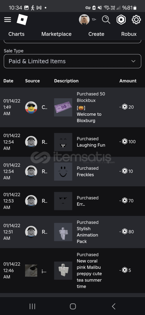4000Total hesapdırhesap sadece kendisine harcanmıştır 4000robuxhesap dopdolu FOLULAR DOLUSUİlanda resime ekleyemediğim daha çooook özellik var