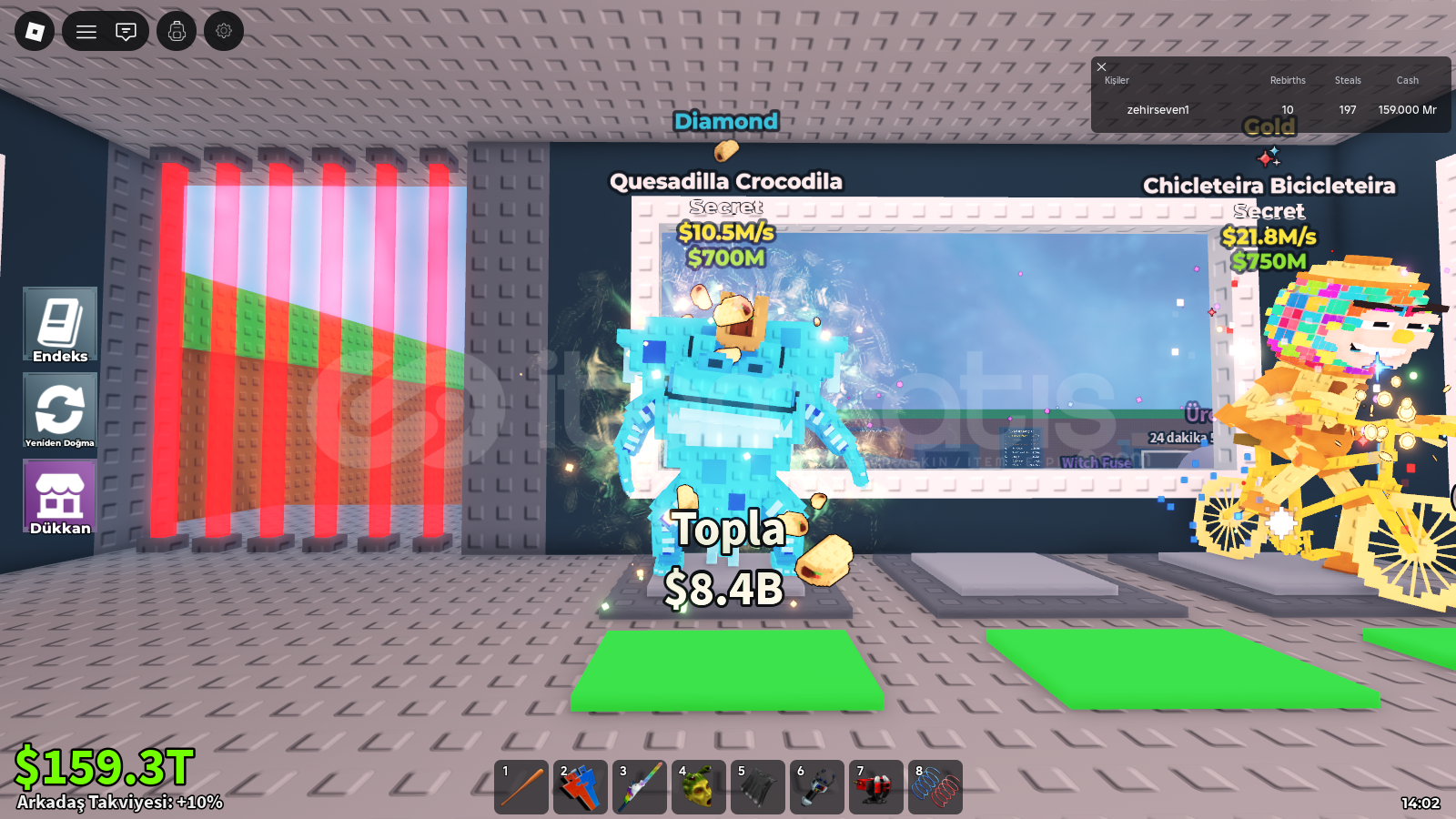 Steal a Brainrot Diamond Quesadilla Crocadila 1 eventli 10.5M/sAldıktan Sonra İsminizi Yazın Ve Beni Bekleyin Aktifsem direk alabilirsiniz anlık teslim ederimPrivate Server da teslim edilir.