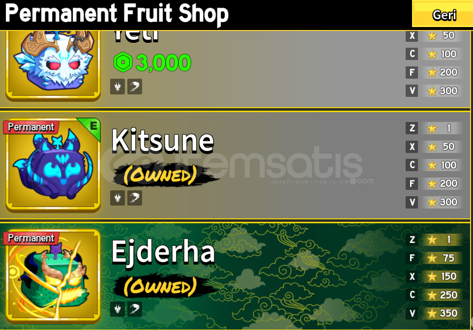 -5.5 BOUNTY-FRUİTLERİ BOŞ MALESEF-PERM DOUGH,PERM KİTSUNE,PERM DRAGON VAR-3 TANE V4 VAR 2Sİ FULL(ANGEL VE HUMAN FULL)-TÜ...