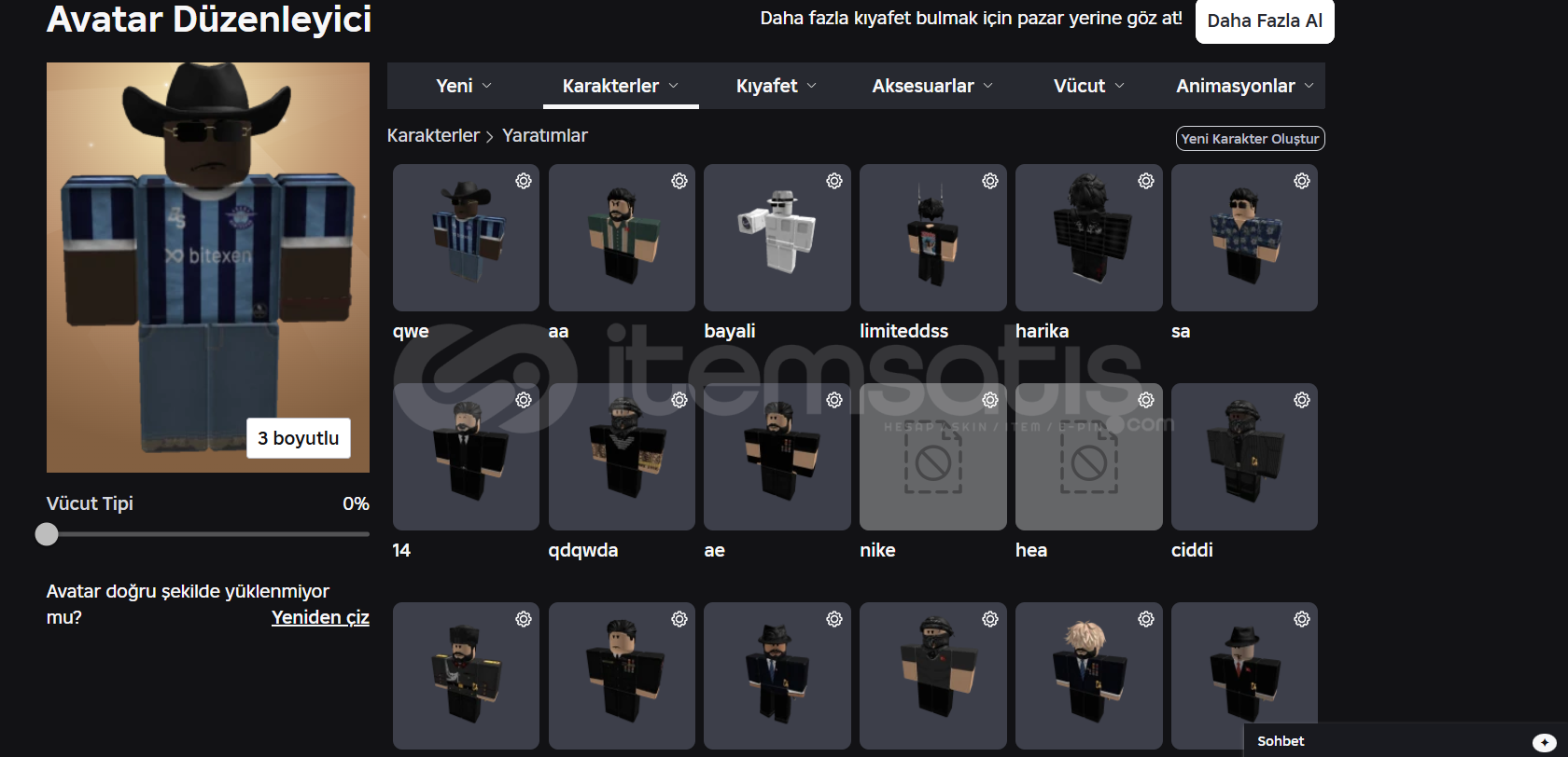 Hesap dolu ve tanınmıştır. Herhangi bir hatası veya sorunu yok, kıyafet vs. vardır. ( Bayan Yok ) Toplamda hesaba 10K Robux yatırılmış ve emek verilmiştir.HERHANGİ BİR SORUN OLURSA İLK BURDAN, SONRA İSE ŞAHSİ DİSCORDUM .grebilsam ADLI İSİMDEN ULAŞABİLİRSİNİZ