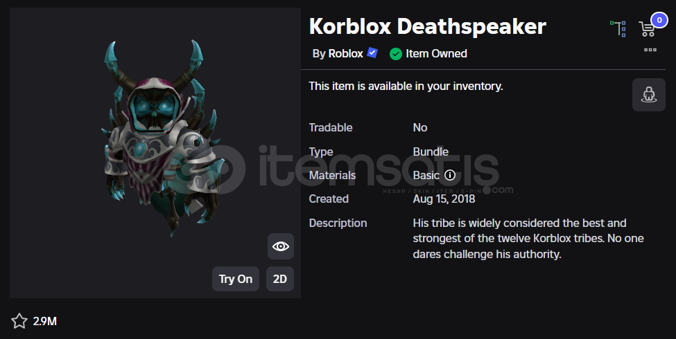 〆 Hesap İçerisinde Sevilen Bundle Aksesuarlarından Biri Olan Korblox (17.000 Robux) Mevcuttur.