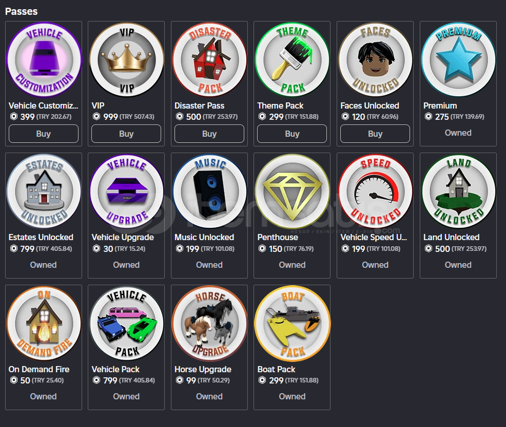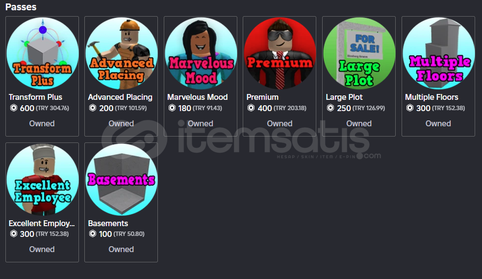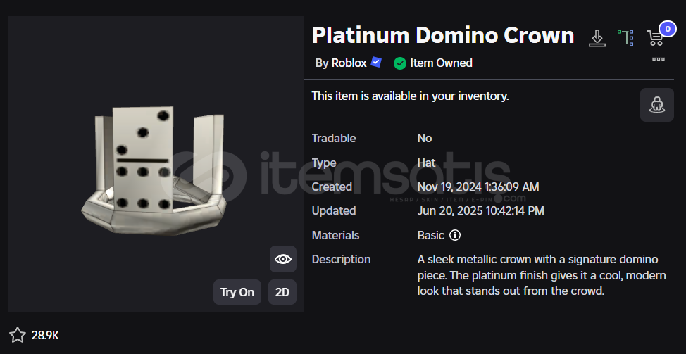 〆 Extra Olarak 200$ Karşılığında Satın Alınan Platinum Domino Crown Ve Eskiden Satın Alınabilen Builders Club Hard Hat (BC) Mevcuttur.