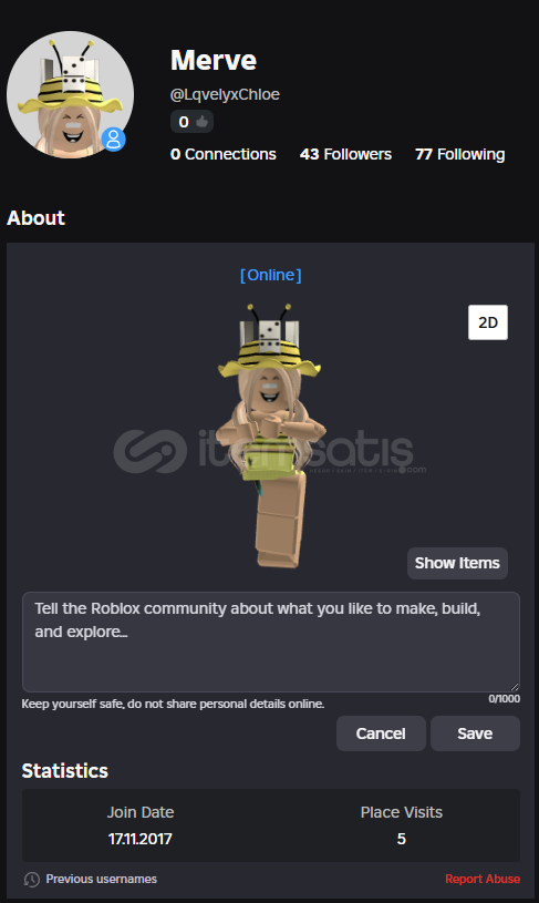 〆 17.11.2017 Tarihide Açılmış Temiz, Sorunsuz Bir Roblox Hesabıdır.