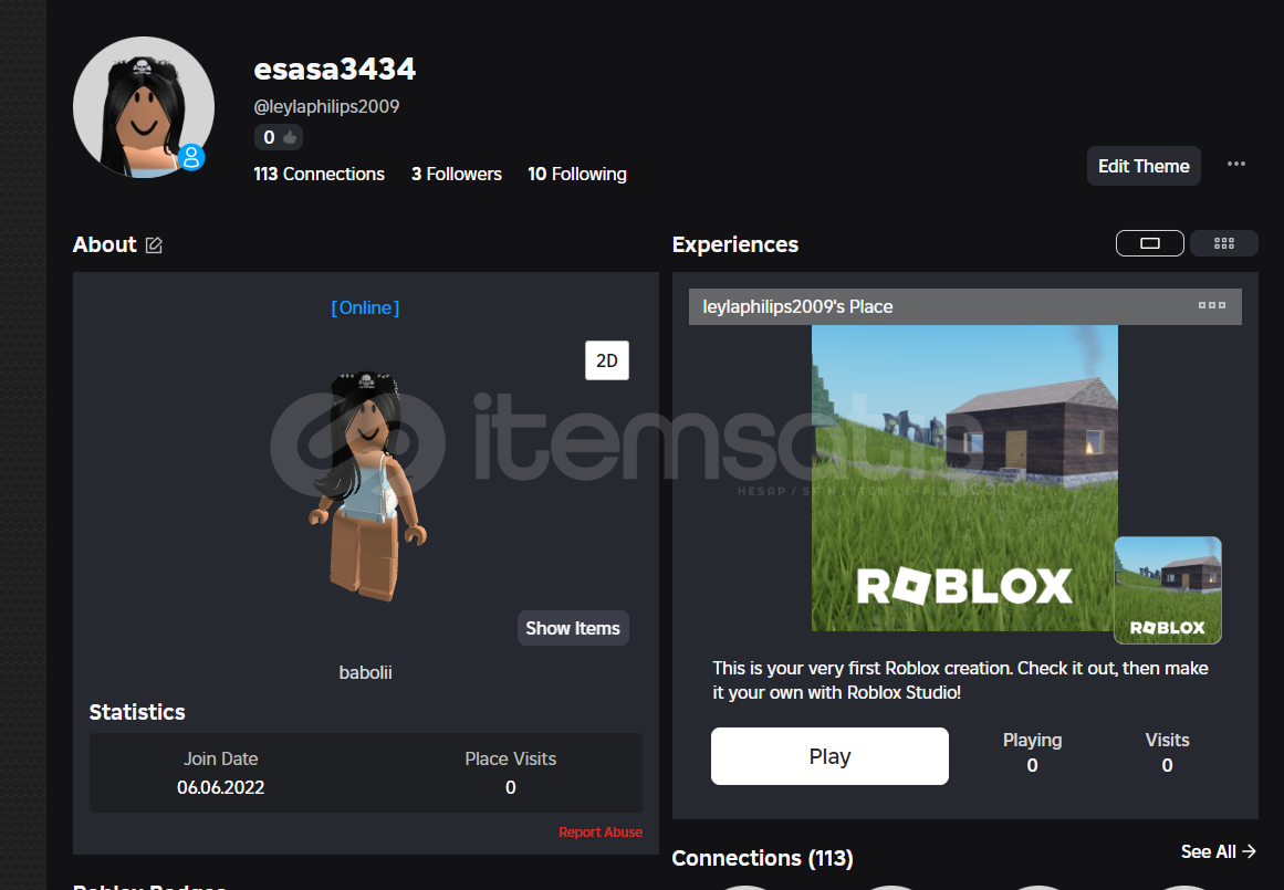 hesapda robux yoktur ama çoğunlukla herşeyden var saç aksesuar shirt pant vs.adopt me gibi oyunlardada eşyalar vardır muhtemelen her oyunda birazcık oynamışlık vardırmaili size teslim edilir