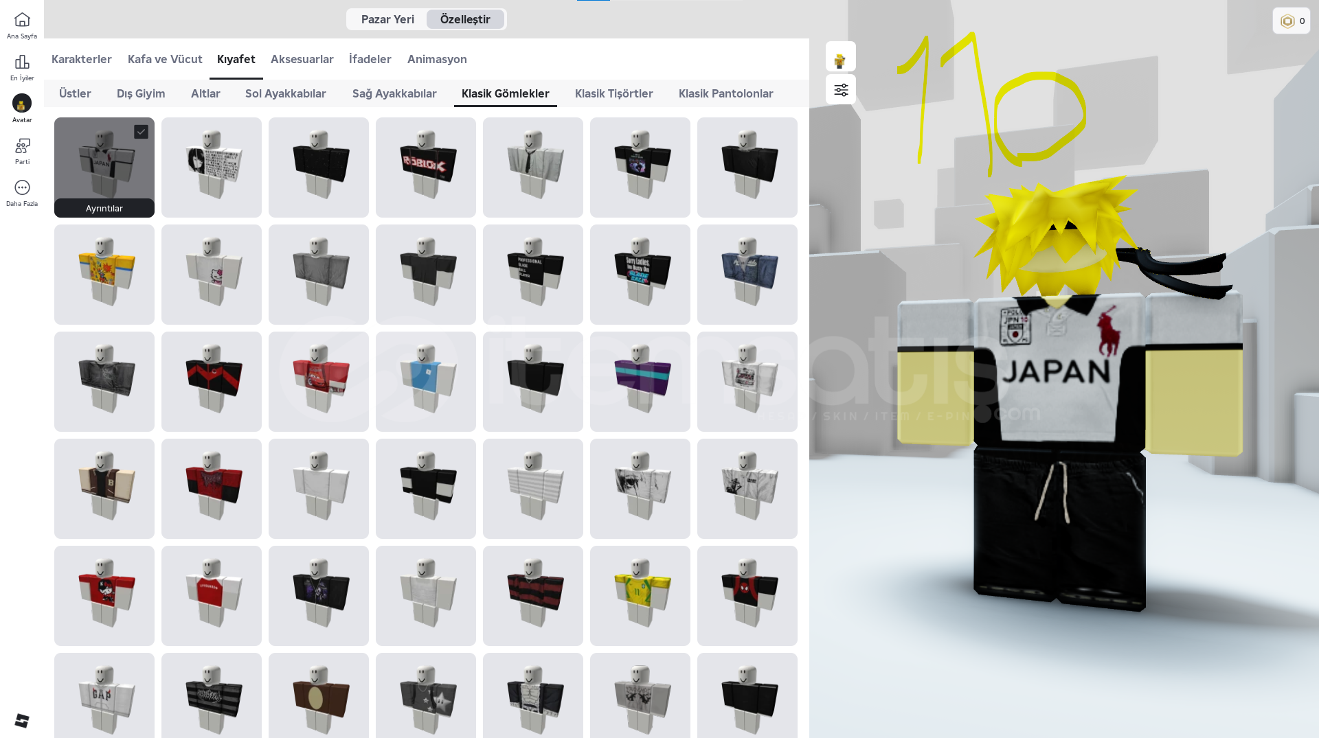 böyle hesab bulunmaz en az 2 3 k robuxlu hesab ucuzdurkıyafet 100-110 arasıpantolon 80-96 arasıaksesuar kafalık 15aksesuar yüzlük 22aksesuar omuz 3SAÇ 30bilgi için dm mm2 skinler de vardır