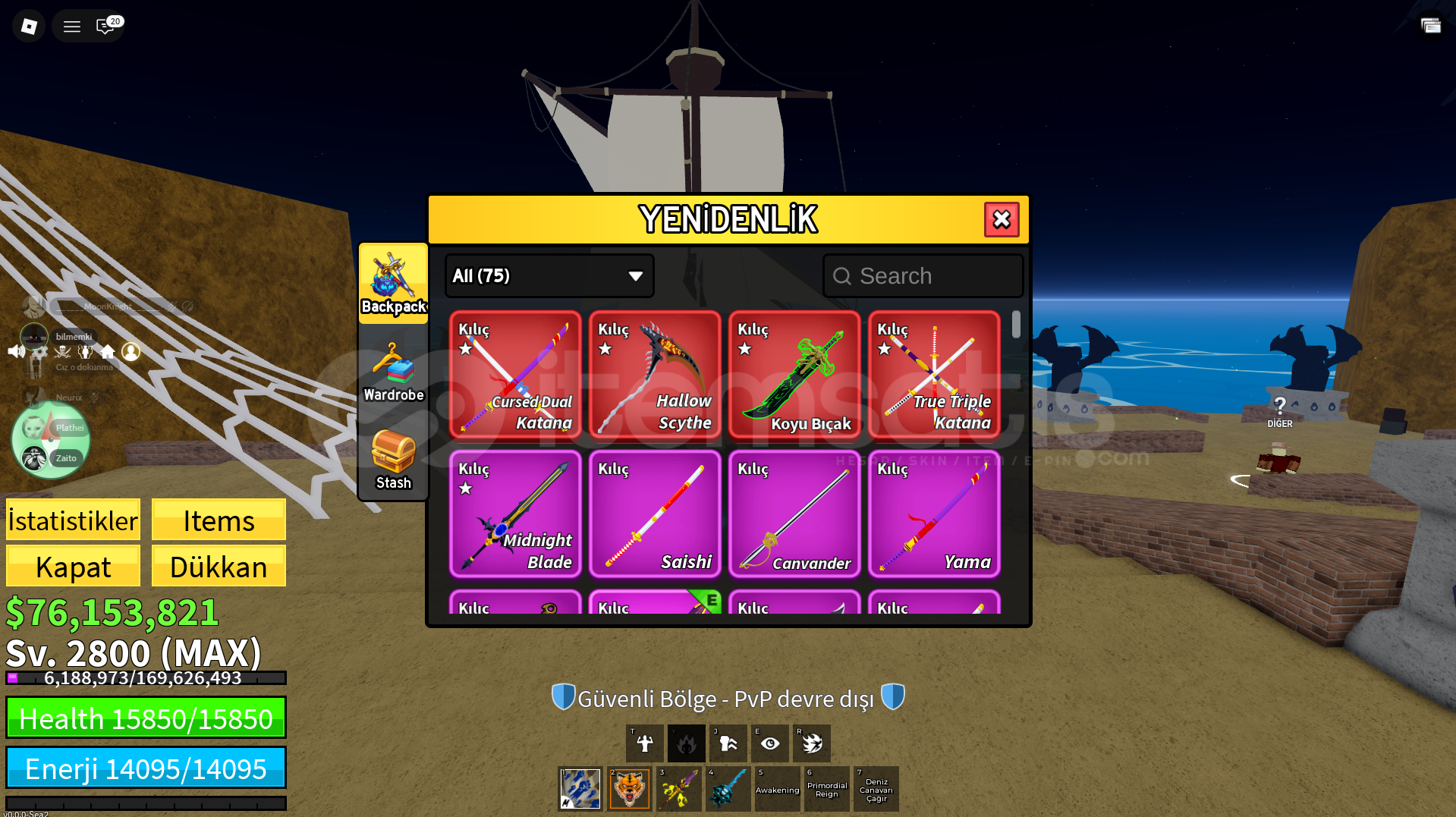 • Tüm mytich kılıçlar (mastery full)