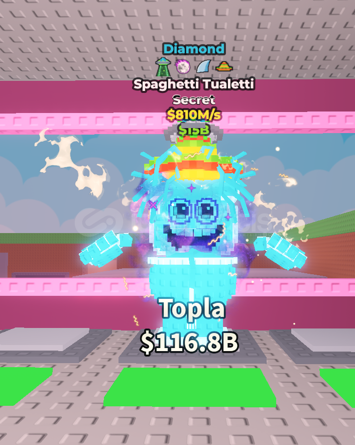 📝 Açıklama: Üst seviye güç sunan, 4 efektli Elmas Spaghetti Tualetti. Hem dizilim güçlendirmek hem de koleksiyon için mükemmel bir brainrot.