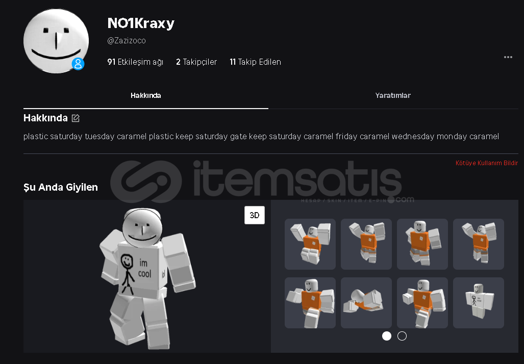 hesabı 17.07.2019 da açdım robux falanda yatırdım çoğu oyundada kasılı hesap inş iyi birine gider nick Zazizoco bakabilirsiniz