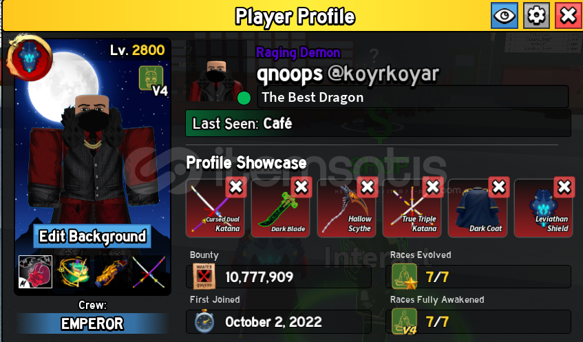 efsane hesap alıcısını üzmez emektar yılların hesabı çeşit çeşit oyunlarda kasılmıs hesap içindekilerini özet bırsekılde anlatayımblox fruıt max level bütün raceler alınıp FULLENDI. 36k para 45k da fragment vardır . 4 permi vardır (perm Dragon portal perm lıghnıng perm budha perm) permler oyunun en sevılen meyvelerı sadece perm fıyat...
