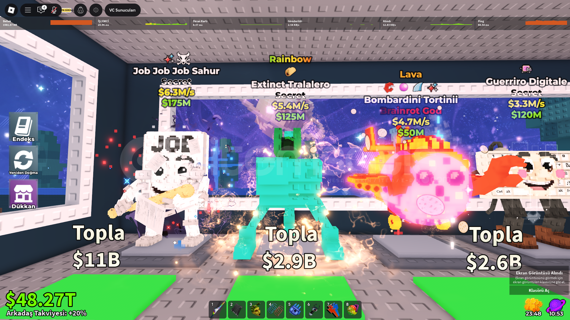 Pet Değerleri ↓Extinct Tralalero Değer: $125M Para: $5.4M/Svip serverda teslim edilir aktif oldukça anında teslim edilir Fiyatta Pazarlık Yapılır