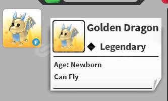 Adopt Me oyununda F Golden Dragon,Oyun içi trade ile teslim edilir,Diğer ilanlarıma da göz atmayı unutmayınız.