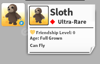 Adopt Me oyununda F Sloth,Oyun içi trade ile teslim edilir,Diğer ilanlarıma da göz atmayı unutmayınız.