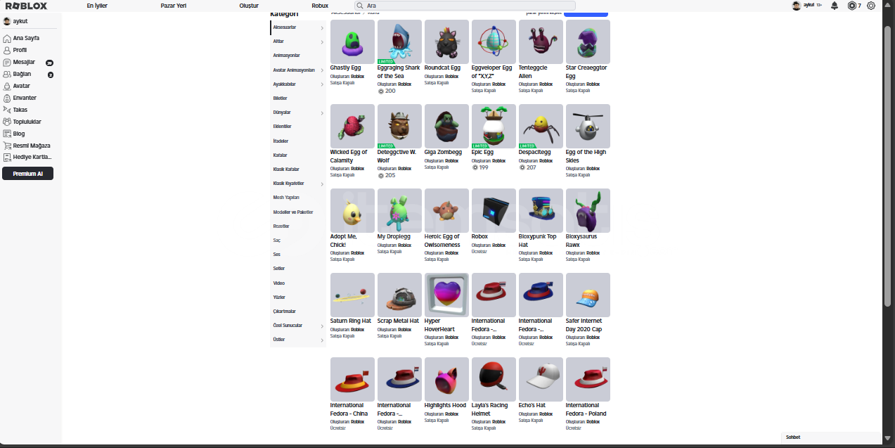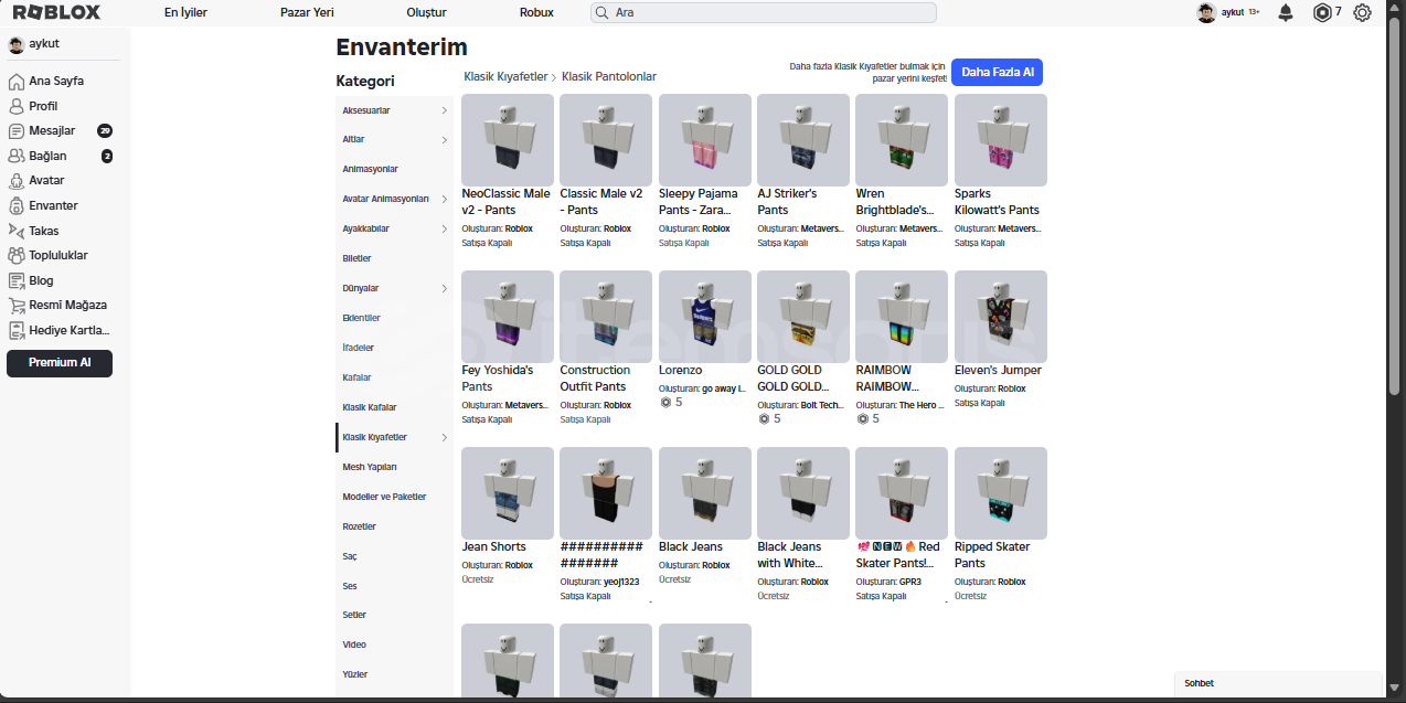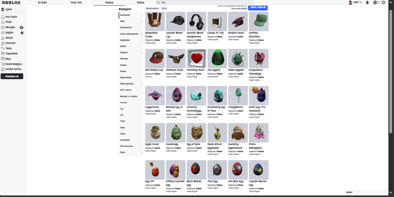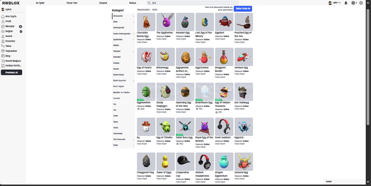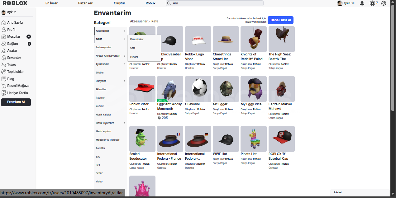 HESAPTA BIRSURU DAHA ESYA VAR AMA EKLENMIYO DAHA FAZLA ENVANTERE BAKINIZ ROBLOXTAN USERNAME ;faculucas1410CASLA
