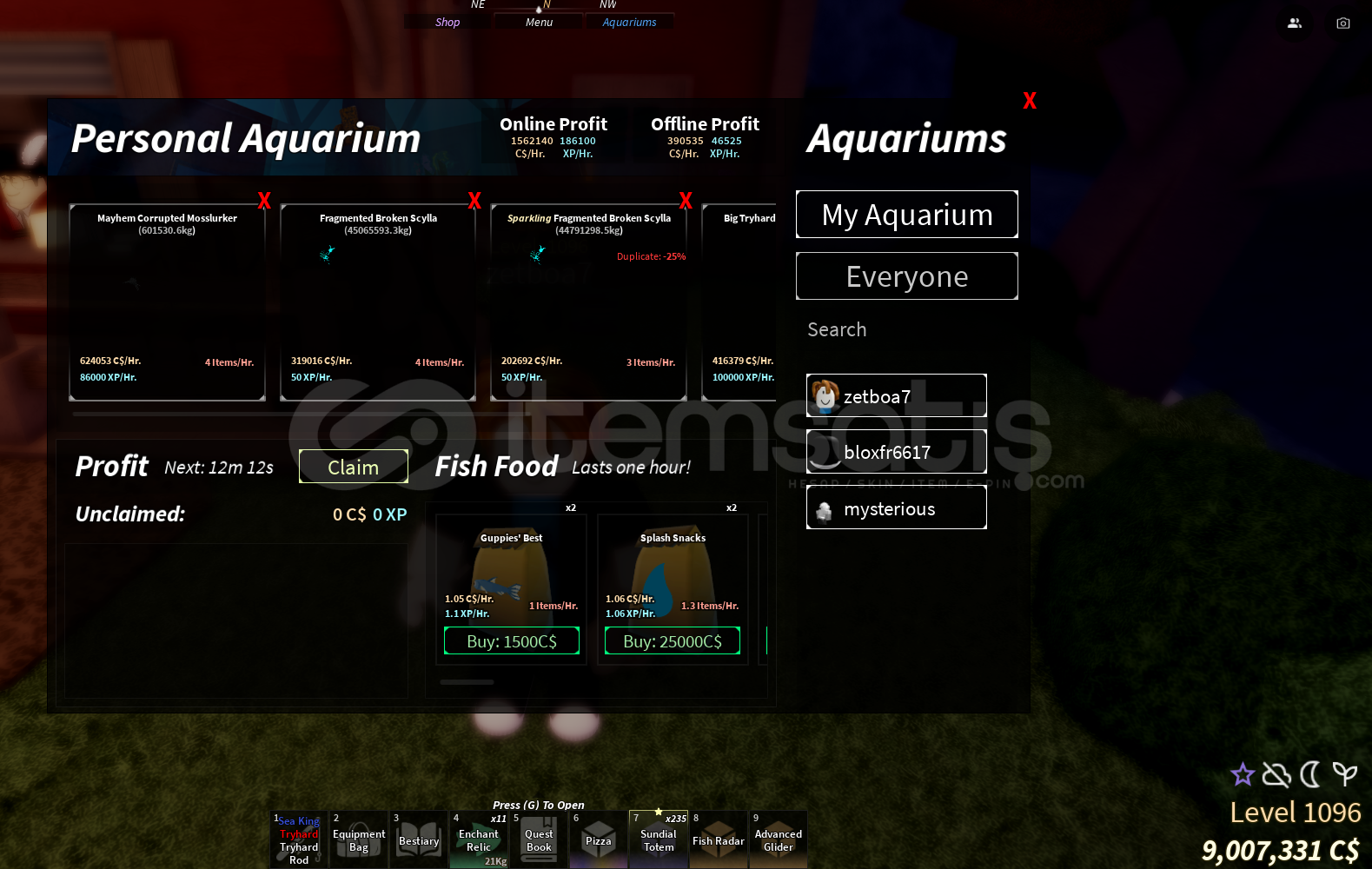 Hesapta Saatlik 1.5m Coin 186k Xp Veren Akvaryum Mevcuttur. Kolayca Afk Kalarak Coin Kasabilirsiniz.