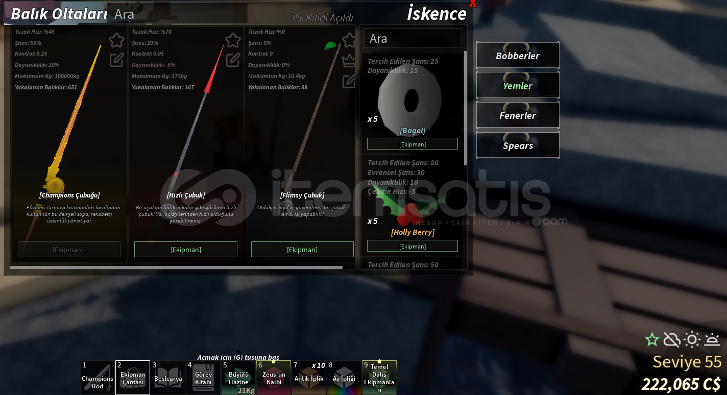 Fisch 55 Level 222k Coin Champions Rod Bulunmaktadır.