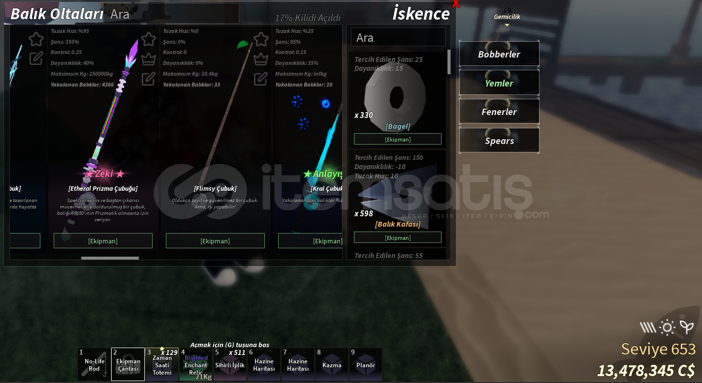 Hesabım 653 Seviyedir İçinde Bir Çok Kaliteli Olta Bulunmaktadır.No Life Rod, Etherial Prism Rod , Leviathan Fangs Rod , Kraken Rod , Tempest Rod , Zeus Rod , Volcanic Rod ,Champions Rod , Kings Rod Ve DahasıHesap Bansız Engelsizdir Oynamaya Engel Hiçbir Durum Söz Konusu Değildir.Mağazamızdan Alınan Tüm Hesaplarda Ömür Boyu Garanti Sağlanmaktadır.Profilimde Her Bütçeye Uygun Fisch Hesab...