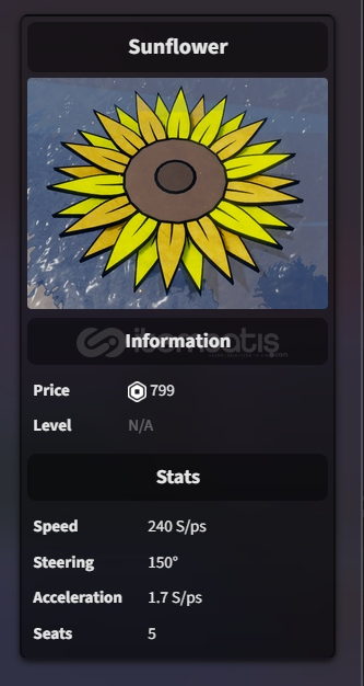 Roblox Fisch için nadir ve sınırlı süreli özel tekne! Ayçiçeği (Sunflower) Boat'u kaçırma.Bu tekne artık oyunda satılmıyor! Yüksek hızı ve estetiği ile öne çık.Hız: 240 S/psKapasite: 5 KoltukÖzellik: Sınırlı Üretim (Limited)