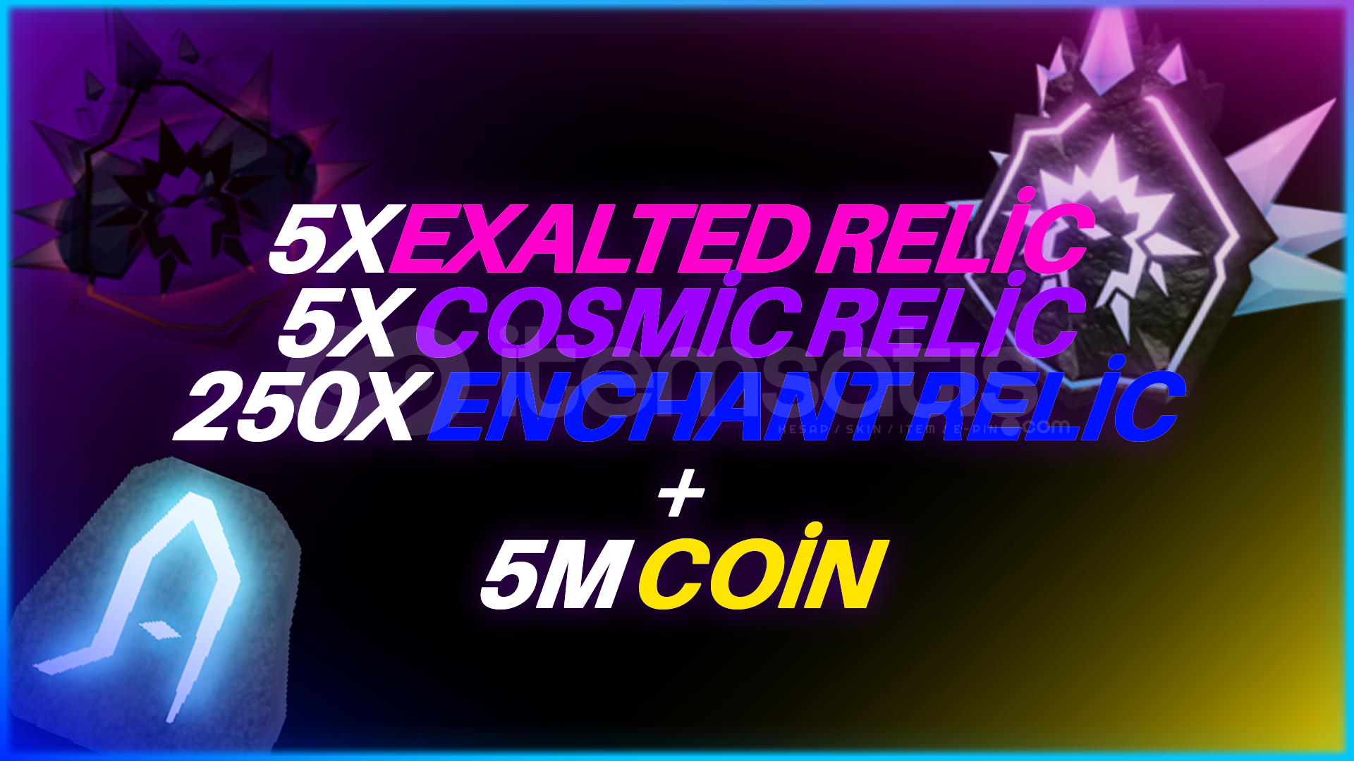 Verilecekler:5x Cosmic Relic5X Exalted Relic250X Enchant Relic5M COİN VerilecektirTrade Yoluyla Verilecektir 15 Level Olmanız Gerekmektedir