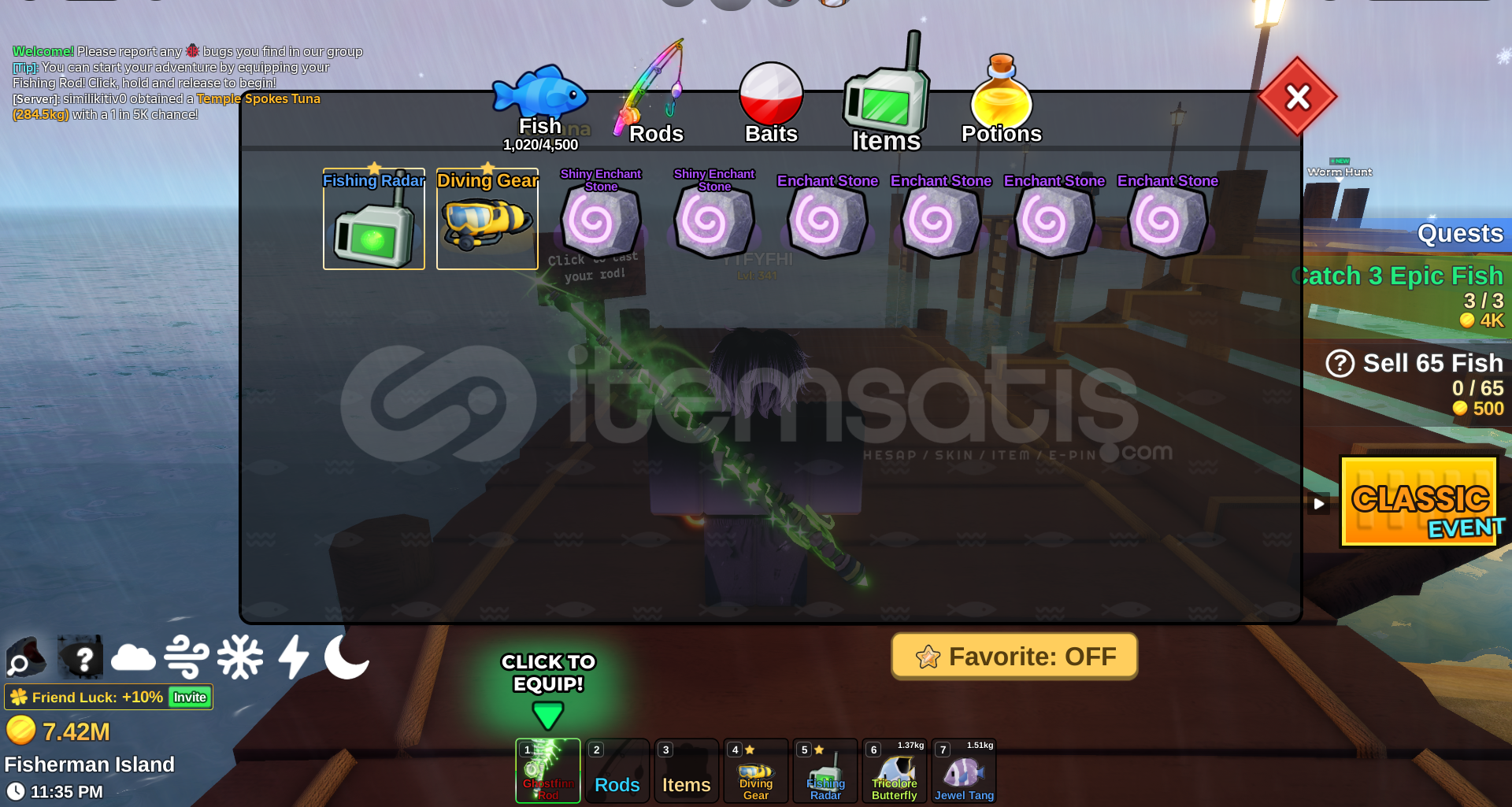 Fish It 6 enchant stone (2 tanesi shiny kalanı normal)
