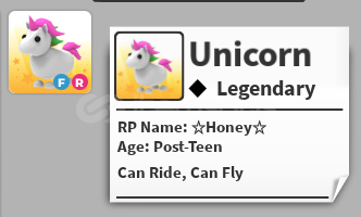 Adopt Me oyununda FR Unicorn,Oyun içi trade ile teslim edilir,Diğer ilanlarıma da göz atmayı unutmayınız.