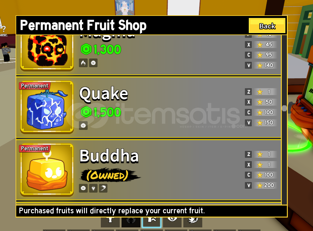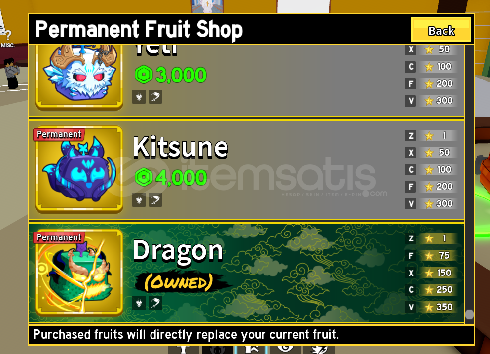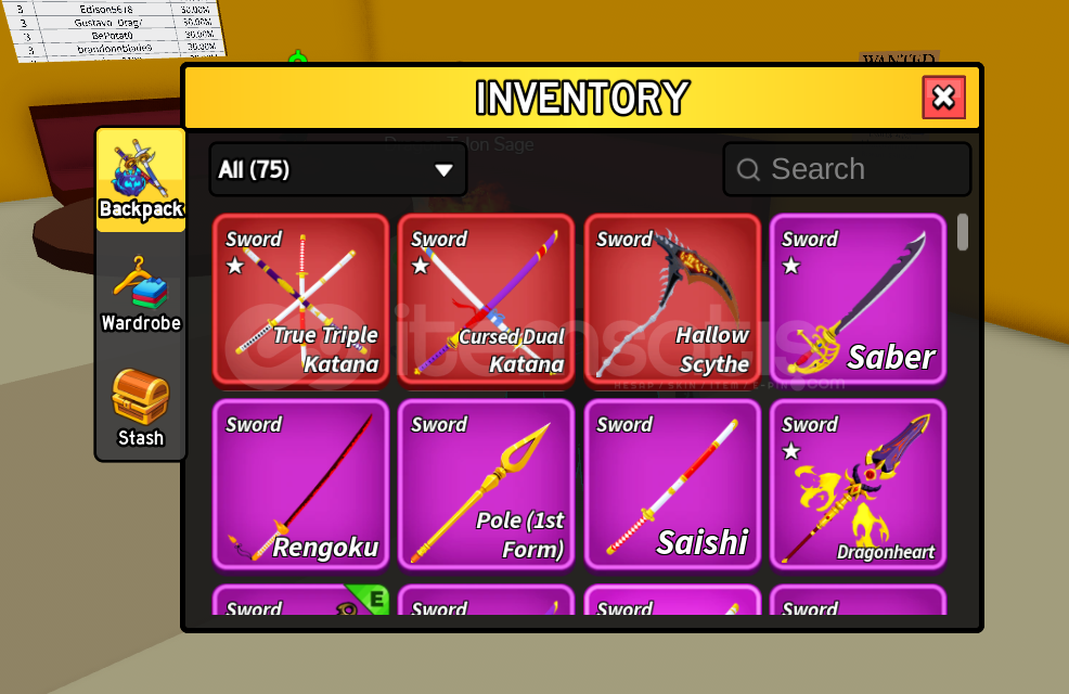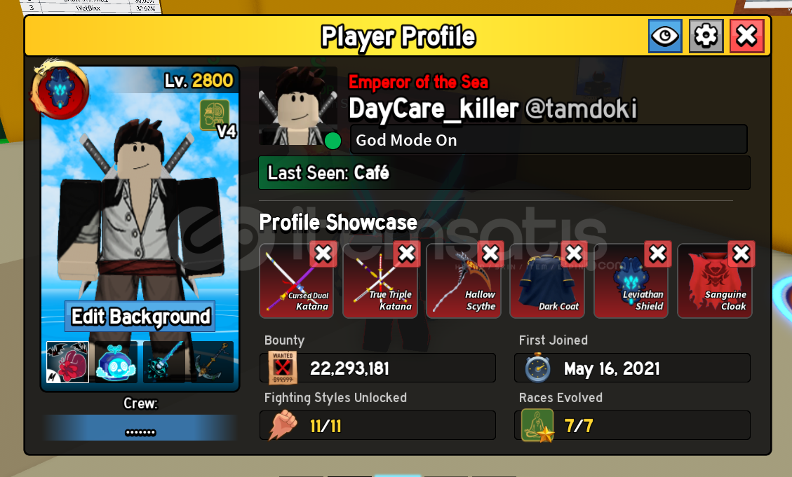 birçok silahda legandry scroll veya mystich scroll basılıdırbutun raceler acıktır ve hepsi en az v3 turdroco trial acıktır ama v4 yapılmamıştırperm dragonda west formundaki cogu skin mevcuttur22.2m bountysi vardır blade ball gibi başka oyunlardada doluduralıcısına şimdiden hayırlı olsunpazarlık payı vardır