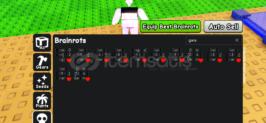 12 adet garamararam secret brainrot (PVB)garamaramların 10 tanesi gold (27 kilo olanıda var 20 kiloda)1 tanesi upside down (11k para veriyor)1 tanesi magma (12k para veriyor)