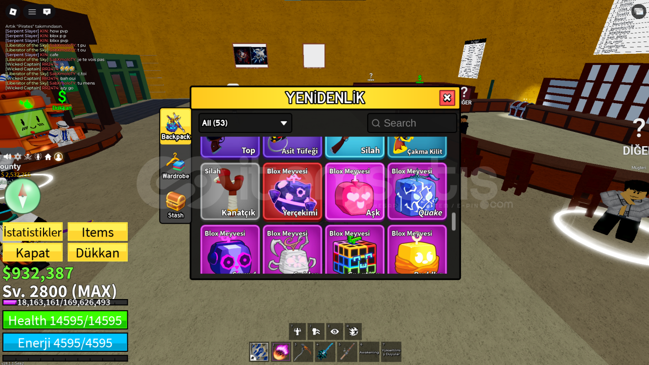 ⭐{GARANTİ} MAİNLİK PVPLİK MAXLVL BLOXFRUİT HESAP