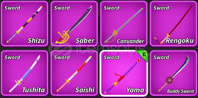 kılıçlar:shizu,saber,canvander,rengoku,dragon trident,tushita,saishi,yama,buddy sword.