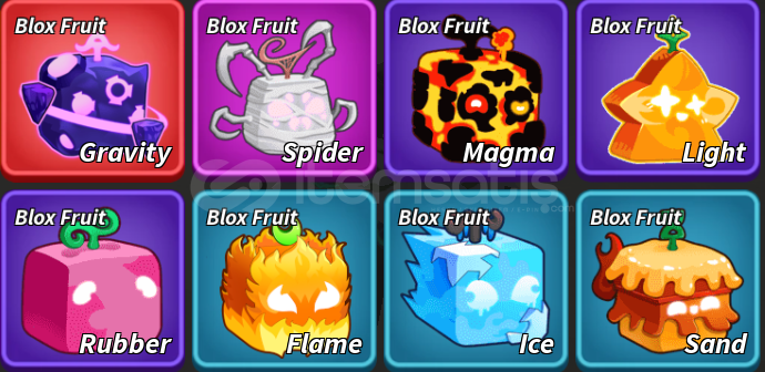 friutler:Gravity,Spider,Magma,Light,Rubber,Flame,Ice,Sand
