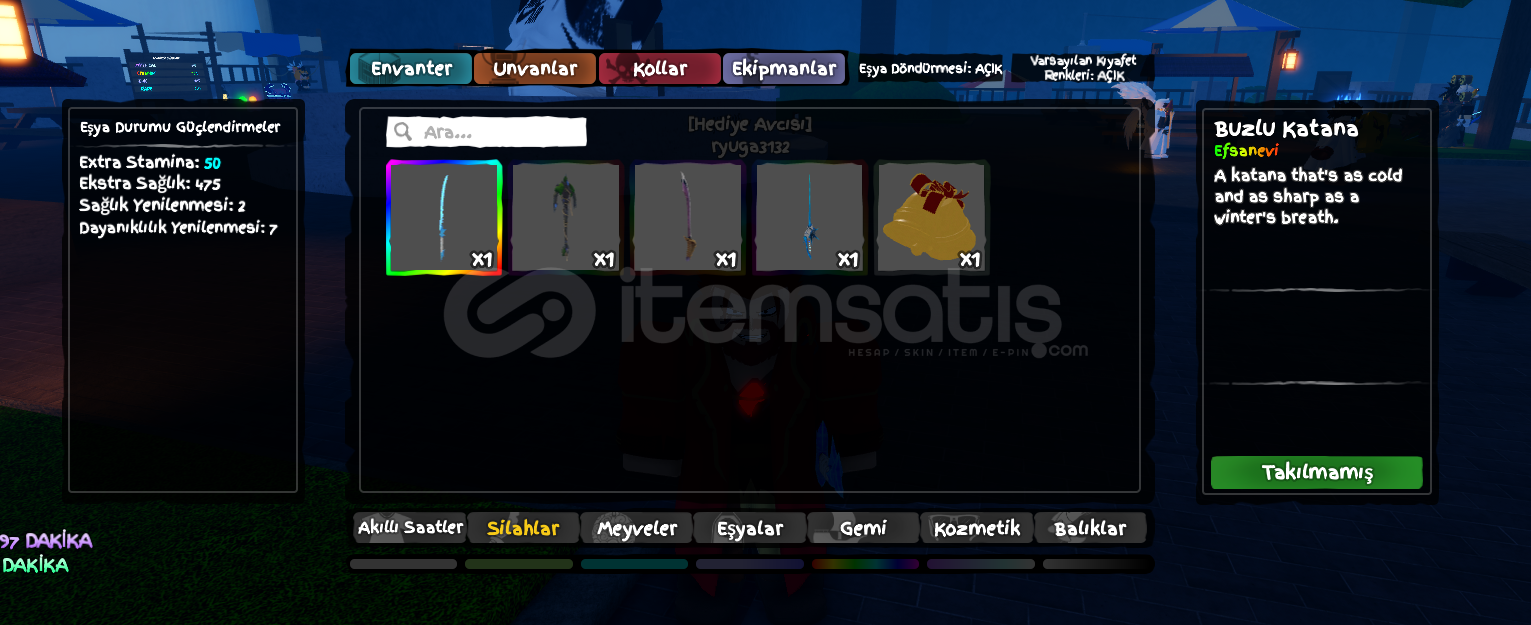hesapta 5 tane kılıç vardır.⚔