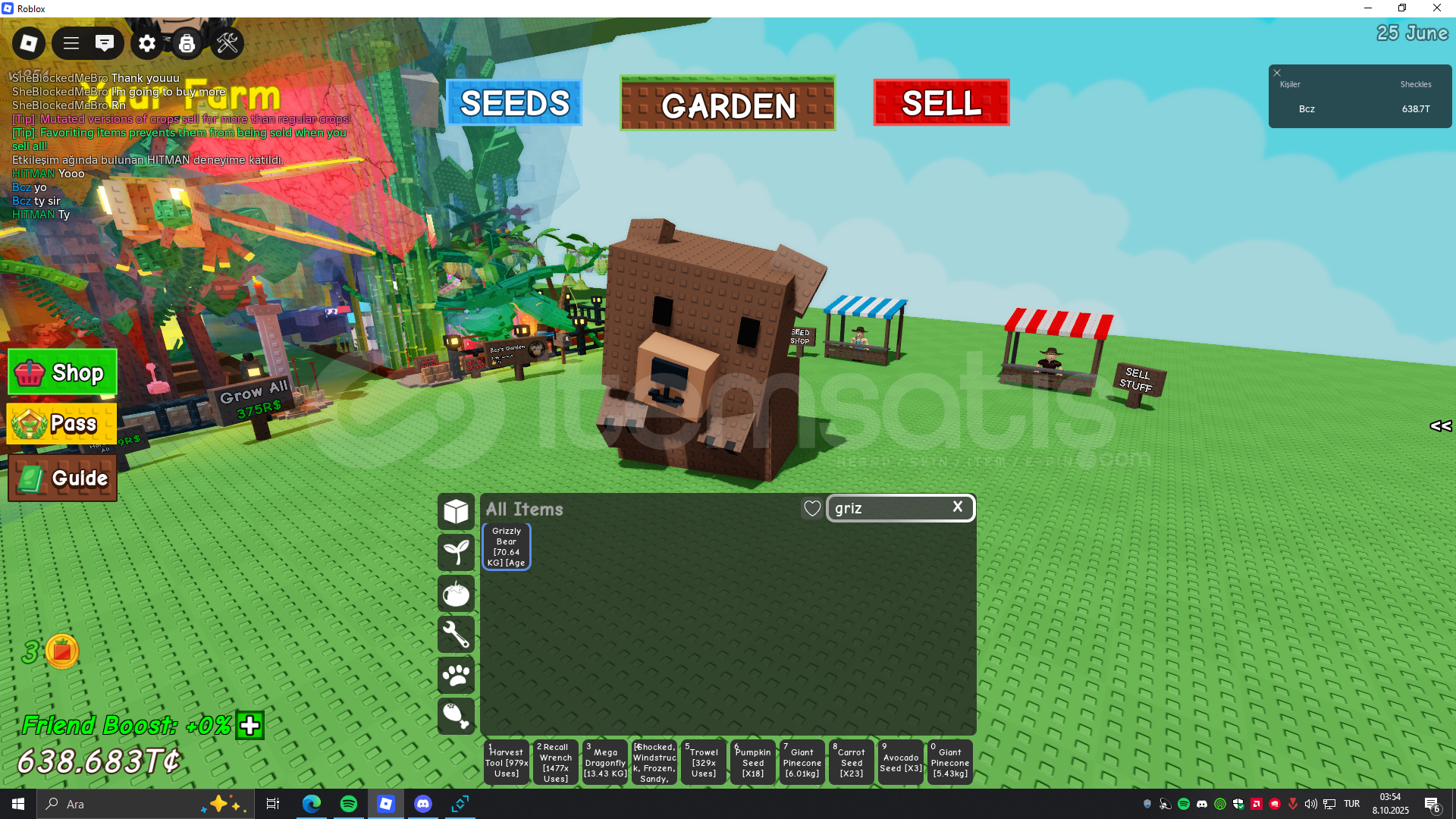 Pet ne işe yarar?Titanictir çok büyüktür.70.64 kg100 level (max)Sorunsuz çalışmaktadır.En kısa sürede priv server ile teslim ediyorum hesabınız +13 değilse arkadaş ekliyorum.Grow a GardenRoblox+3100 başarılı işlem.bcz store güvencesiyle.