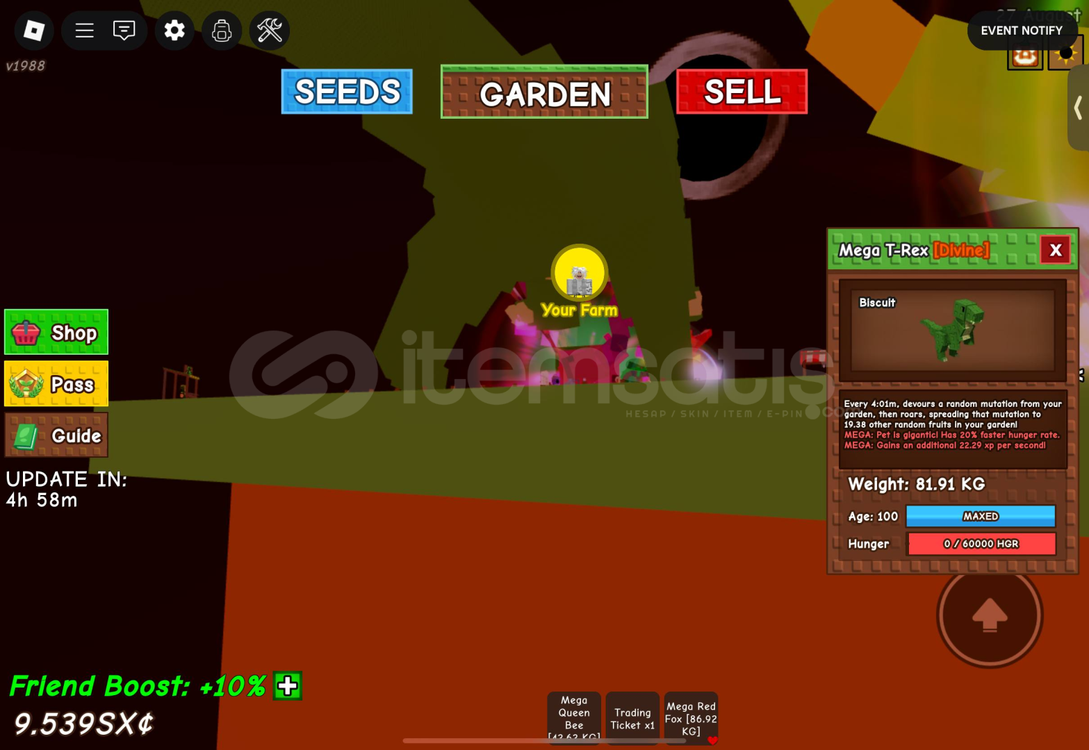 Grow A Garden Huge Titanic Trex.Aktif değilsemde alabilirsiniz hemen dönüş yaparım.100 age 81.91Kg