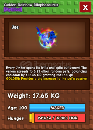 Grow A Garden Golden RB Hatched Dilo