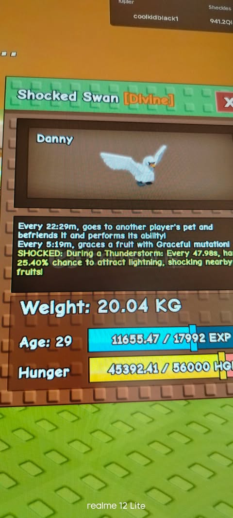 GROW A GARDEN HUGE MEGA SWAN MAX 56.65KG