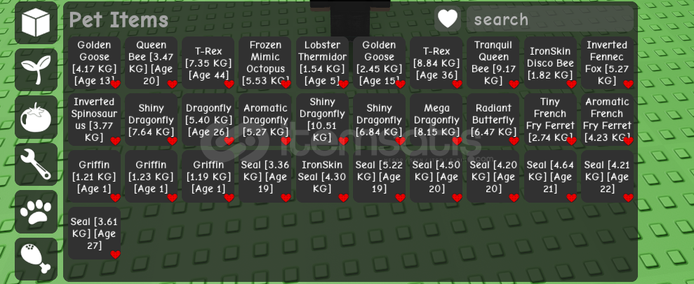 -----------------------------------6X DRAGON FLY1X DİSCO BEE1X FENNEC FOX1X BUTTERFLY2X FFF1X SPİNOSAURS2X TREX1X LOBSTER THERMİDOR3X GRİFFİN8X SEAL2X GOLDEN GOOSE1X MİMİC OCTOPUS2X QUEEN BEE------------------------------------