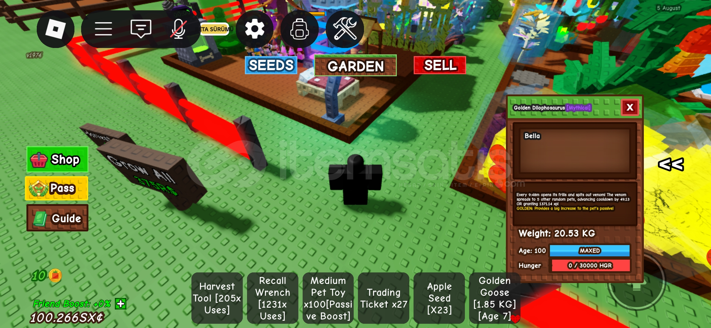 İyi kilogramda ve maksimum yaşında olan tam bir xp canavarı Golden dilophosaurus Elimde bunlardan fazla var ilgilenen dm