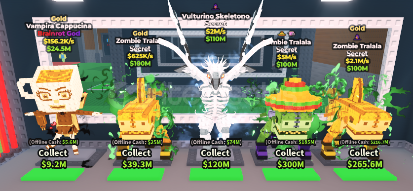 Bu paketin içinde 6 hallowen edition brainrot var bir tane de gold orcalero orcala hediyemizdir1-)Vampira Cappucina Brainrot god 156K/s2-)Zombie Tralala gold 625K/s3-)Vulturo Skeletono yeni secret 500K/s4-)Zombie Tralala mexico mutasyonlu 5.6M/s5-)Zombie Tralala Gold ve cadı mutasyonlu 2.1M/s6-)Zombie Tralala 500K/s7-) Gold orcalero orcala 125K/s (hediyemizdir)