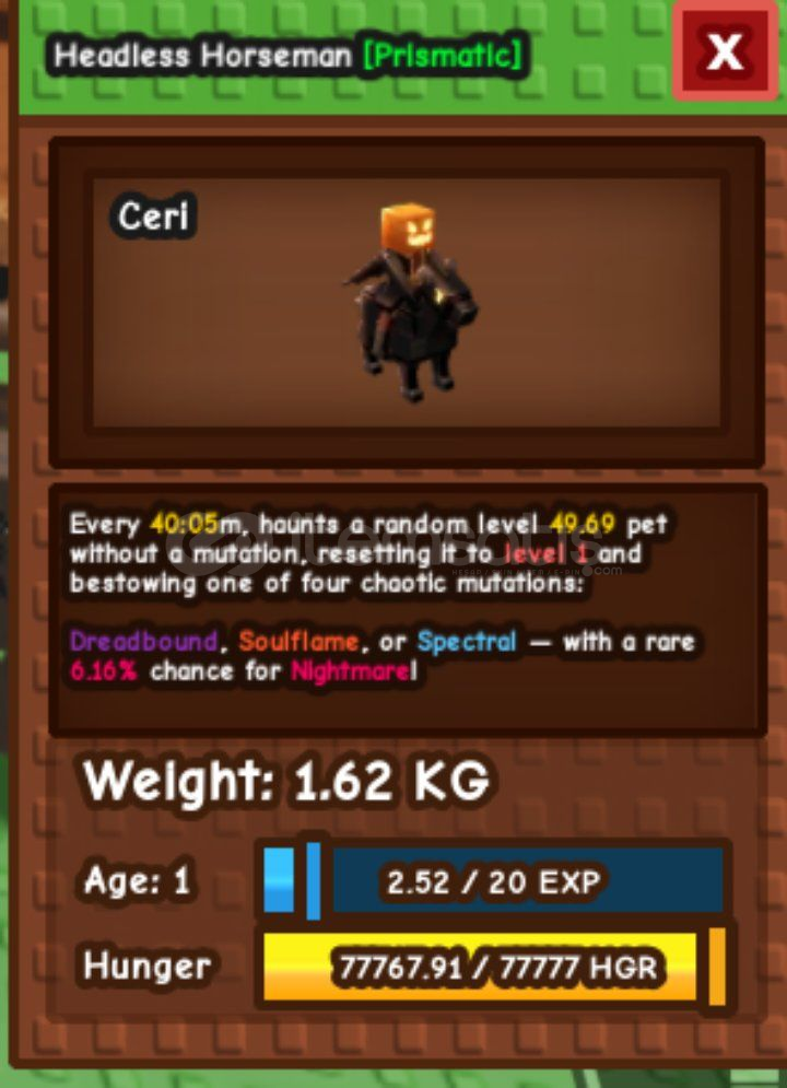 ⭐HEADLESS HORSEMAN ⭐GROW A GARDEN PET