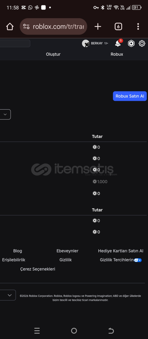 60k totalli hesap çoğu oyunda kasılmıştir 1k robuxta gelcek hesaba tsb oynayanlar hesaba baksın bütün game passler var tsb de mm2 de elit radyo ve Max leveldir hesap ve daha sayamadığım bir sürü oyunda kasılmıştir hesap bol kombinli zombi animasyonu vs dolu bir hesap bakmadan geçmeyin derim indirim de yaparım oyunu birakicam o yüzden satıyorum alıcısına hayırlı olsun