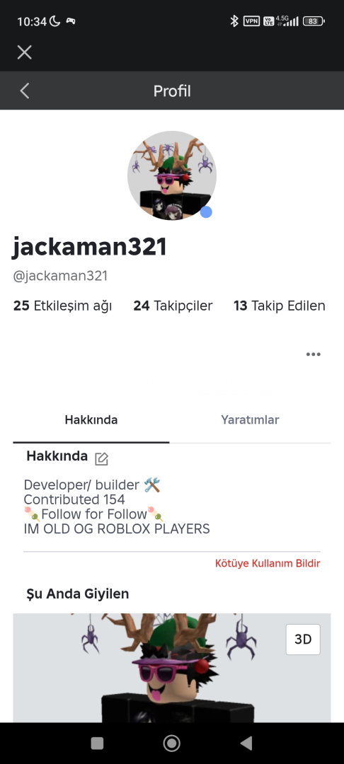 Bidaha bilgilendirme olsun ilk posta benim geri çekilme olmaz eğer olursa hemen bana ulaşabilirsiniz size yardımcı olurum eğer hesap kulanip robloxda kural ihlali vsre yapipda hesap iade veya çalinma vsre olursa veya hesap başkasına verirseniz siz sorumlusunuz hesap aldinizda kendiniz dişinda başkasına vermeyiniz iyi günler dilerim !