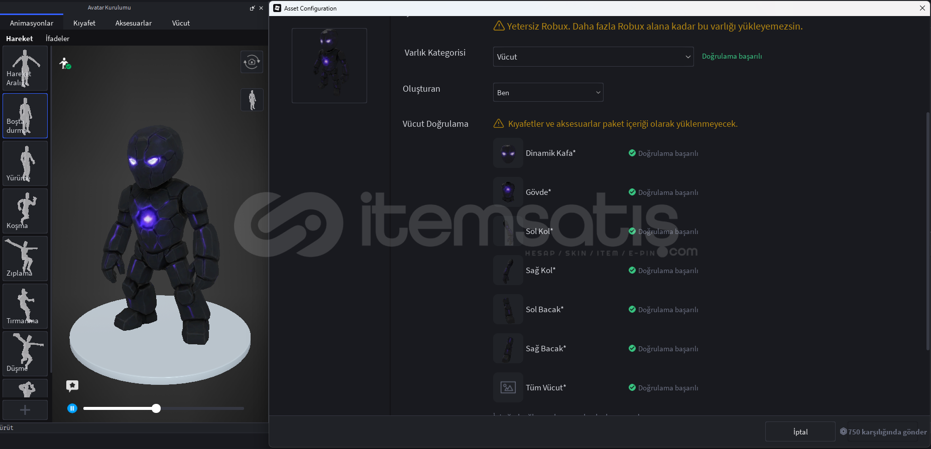 Roblox Studio’ya içerik yüklemek için en az 750 Robux bakiye bulundurmalısınız.