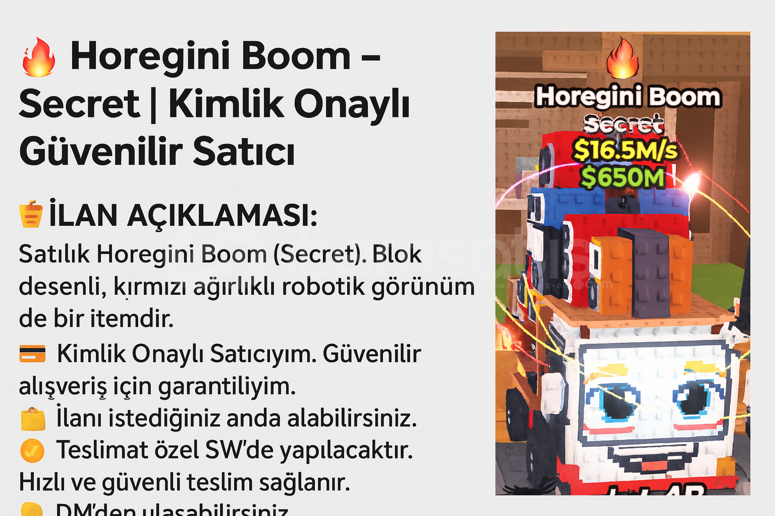 Satılık Horegini Boom (Secret).💳 Kimlik Onaylı Satıcıyım. Güvenilir alışveriş isteyenler için tamamen garantiliyim.🛒 İlanı istediğiniz anda alabilirsiniz. Stokta ve hazırdır.📦 Teslimat özel SW’de yapılacaktır. Hızlı ve güvenli teslim sağlanır.💬 DM’den ulaşabilirsiniz.