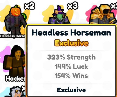 Headless horseman TrainerNadir çıkan trainer'lerden biridir.Kalıcı güçlendirmeler verir.Özelliklerini resimden görebilirsiniz.Upgrades kısmından takılır.Çevrimdışı olsam da satın alabilirsiniz. Hemen oyun içi teslim edilir.