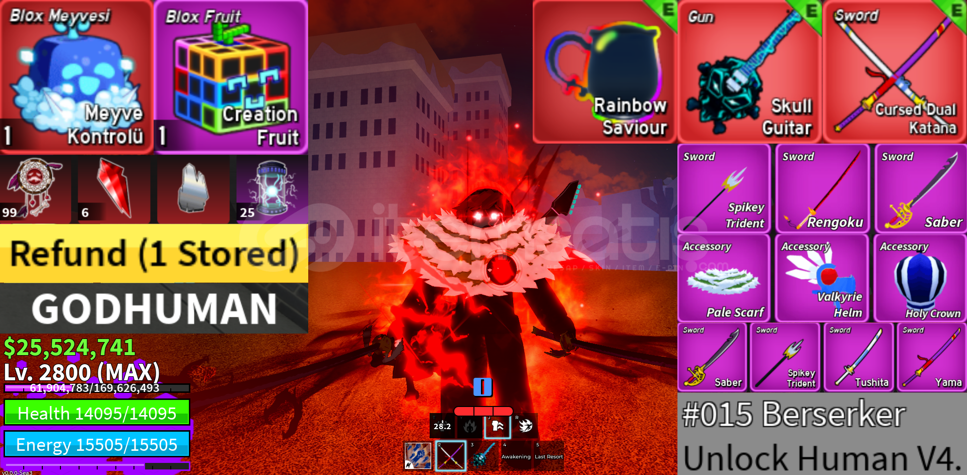 ✅HUMAN V4 FULL GEAR+CDK+SG+GH+RS+1 MYTH✅Hesap Özellikleri ( Blox Fruits ) :✅Hesapta Human V4 Full Gear Vardır.✅Max Leveldir.✅Godhuman Vardır.✅CDK Vardır.✅Skull Guitar Vardır.✅İnventoryde Kontrol Vardır.✅Rainbow Saviour Vardır.✅25M Para Vardır.✅Dough King Kesilmiştir.✅Rip İndra Kesilmiştir.✅Terror Shark Kesilmiştir.✅Hesapta Gmail Bağı Yoktu...