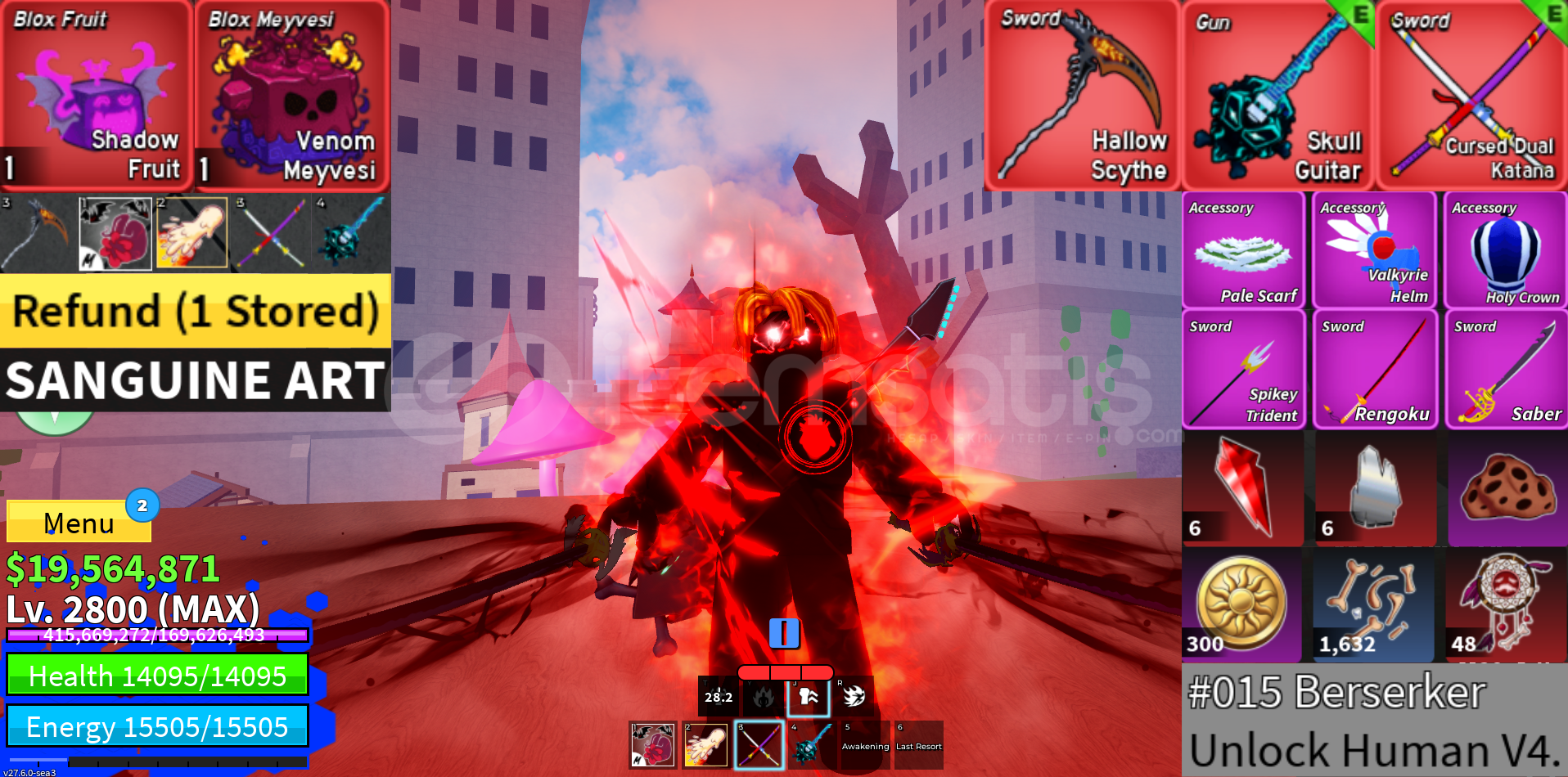 ✅HUMAN V4 FULL GEAR+DOUGH V2+CDK+SG+HS+SANG A✅Hesap Özellikleri ( Blox Fruits ) :✅Hesapta Human V4 Full Gear Vardır.✅Max Leveldir.✅Hesap Dough V2 Kullanıyordur.✅Godhuman Vardır.✅Sanguine Art Vardır.✅CDK Vardır.✅Skull Guitar Vardır.✅Hallow Scythe Vardır.✅İnventoryde Venom ve Shadow Vardır.✅19M Para Vardır.✅Dough King Kesilmiştir.✅Rip İndra Kesilmi...