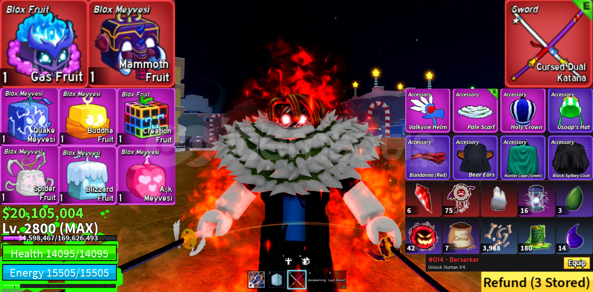 ✅HUMAN V4 FULL GEAR+CDK+GAS+MAMMOTH✅Hesap Özellikleri ( Blox Fruits ) :✅Hesapta Human V4 FULL GEAR Vardır.✅Max Leveldir.✅Godhuman Vardır.✅İce Kullanıyordur.✅CDK Vardır.✅İnventoryde Gas ve Mammoth Vardır.✅İnventoryde Buddha, Quake, Blizzard, Creation, Spider ve Love Vardır.✅20M Para Vardır.✅Dough King Kesilmiştir.✅Rip İndra Kesilmiştir.✅Terror Shark K...